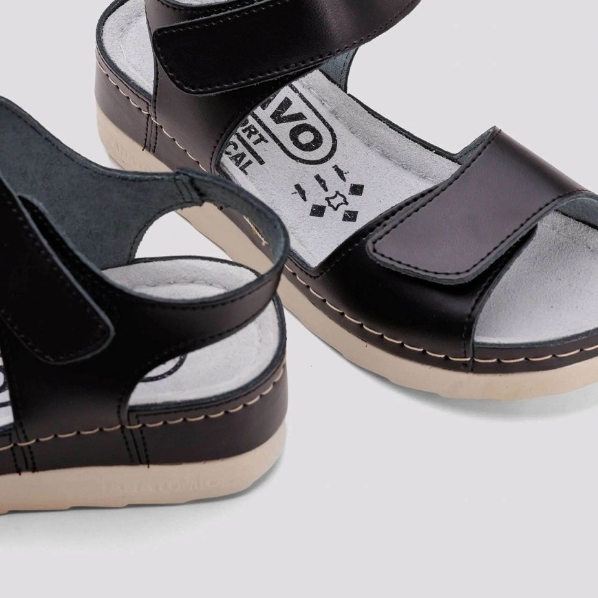 Ove lagane letnje papuče namenjene su ženama koje traže udobnu i praktičnu obuću za svakodnevno nošenje. Gornjište od italijanske kože sa čičak trakom omogućava lako prilagođavanje širine stopalu. Uložak od memorijske pene prati oblik stopala i obezbeđuje prirodan i udoban hod, dok kožna presvlaka sprečava klizanje i povećava komfor. Stabilan poliuretanski đon smanjuje opterećenje na zglobove i pruža sigurnost pri svakom koraku.