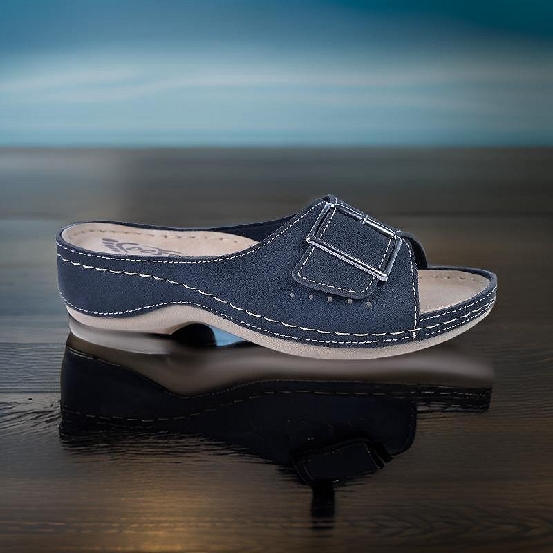 Udobne papuče od eko kože sa anatomski oblikovanim gazištem koje pruža pravilnu potporu stopalu i olakšava svakodnevno kretanje. Mekana tabanica doprinosi prijatnom osećaju tokom nošenja, čak i pri dužem hodanju ili stajanju.