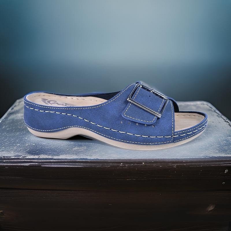 Udobne papuče od eko kože sa anatomski oblikovanim gazištem koje pruža pravilnu potporu stopalu i olakšava svakodnevno kretanje. Mekana tabanica doprinosi prijatnom osećaju tokom nošenja, čak i pri dužem hodanju ili stajanju.