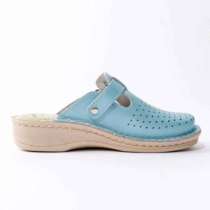 Ženska klompa izrađena od najfinije prirodne kože, sa kožnom tabanicom koja sadrži 8 mm masažnog gela, pruža izuzetnu udobnost i rasterećenje pri svakom koraku. Masažni gel apsorbuje udarce, smanjuje pritisak na pete i idealan je izbor za osobe koje imaju problem petnog trna, kao i za sve koji provode mnogo vremena stojeći ili hodajući.