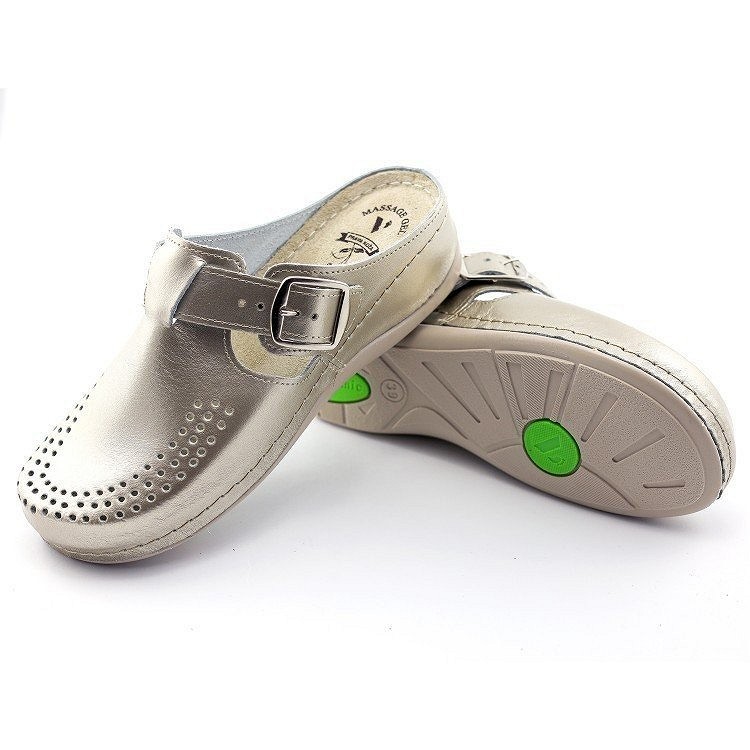 Gazište klompe ispunjeno je MASSAGE GEL-om, koji pri svakom koraku pruža prijatan efekat masaže. Ovaj gel ublažava pritisak na stopala, pospešuje cirkulaciju i deluje opuštajuće na celo telo, čineći ih idealnim izborom za osobe koje dugo stoje zbog posla ili drugih obaveza.